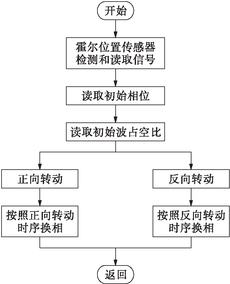 转子位置检测程序是调速系统控制程序的重要环节,具体控制方法为:通过霍尔位置传感器检测转子的位置变化,得到相应的数字逻辑信号;经过隔离操作再传输到DSP芯片的HALL检测模块中,程序流程如图7所示.