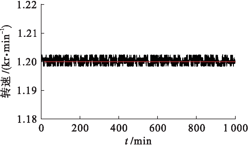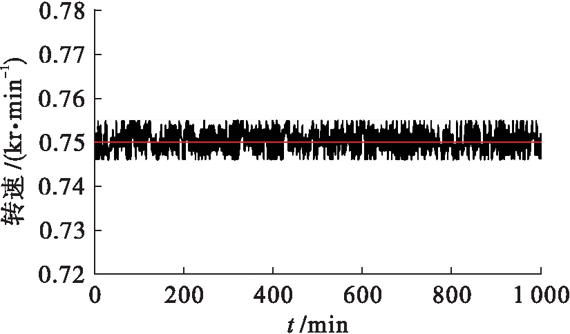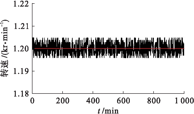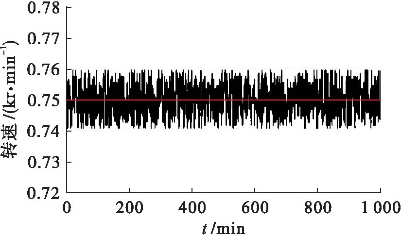 图8~11中,中间的红线表示无刷直流电机的给定转速,黑线表示无刷直流电机的实时转速.对比图8和图10可知,当给定转速为750 r/min时,基于DSP的无刷直流电机的实时转速有微小抖动,总体保持稳定;而基于NiosⅡ的直流电机的实时转速波动较大,对比图9和图11也可以发现这样的结论.当给定转速为1 200 r/min时,无刷直流电机的实时转速抖动小于给定转速为750 r/min的抖动,即该软件系统在给定转速较高时,其实时转速的稳定性更好.