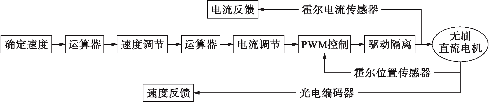 为了更加精确地控制电机转速,本文使用TI公司的TMS320F28335芯片进行控制,设计了无刷直流电机的调速系统,其控制方案如图2所示.