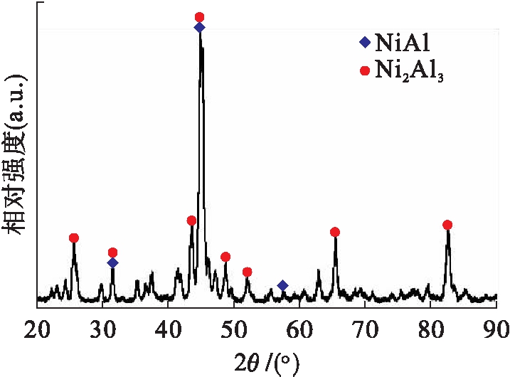 将试件表层的氧化膜和Al层打磨掉并露出扩散层区域后进行XRD分析,结果图6所示.由图6可见,扩散层存在大量Ni2Al3和少量NiAl金属间化合物,这两种金属间化合物均会提高涂层的高温抗氧化性.