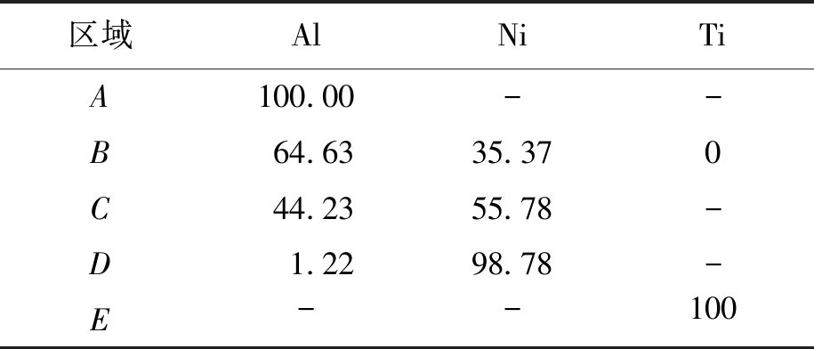 区域AlNiTiA100.00--B64.6335.370C44.2355.78-D1.2298.78-E--100