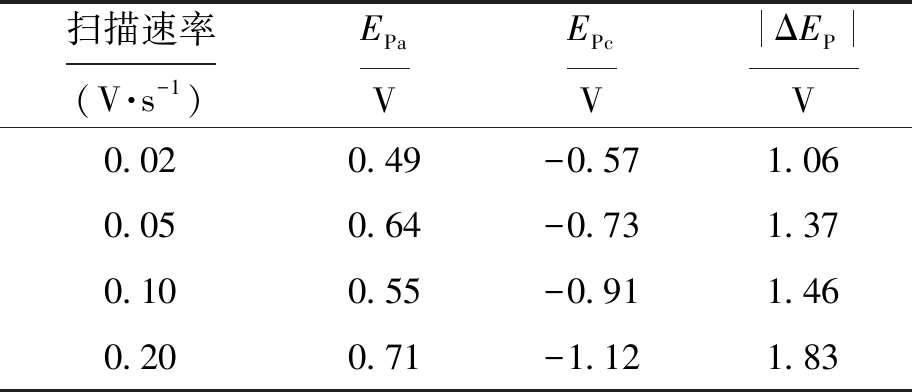 表2 扫描速率对峰值电位的影响