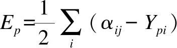 假设输出层中第i个神经元的期望输出值为αij,实际输出为Ypi,则输出层的误差Ep为