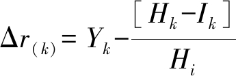 式中:Ydi为调整权值因子;f1为激发函数;N为样本容量.计算得到第k时刻测量误差的估计值Δr(k)为