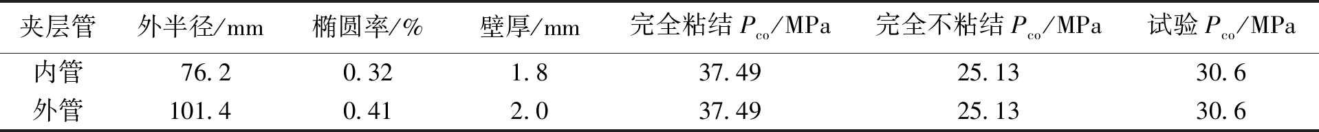 夹层管外半径/mm椭圆率/%壁厚/mm完全粘结Pco/MPa完全不粘结Pco/MPa试验Pco/MPa内管76.20.321.837.4925.1330.6外管101.40.412.037.4925.1330.6