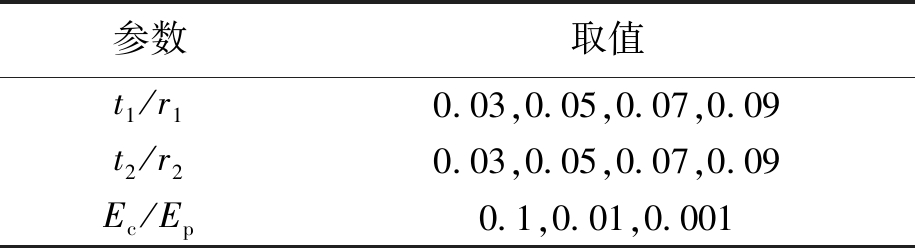 参数取值t1/r10.03,0.05,0.07,0.09t2/r20.03,0.05,0.07,0.09Ec/Ep0.1,0.01,0.001
