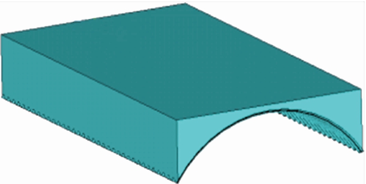 混凝土拱加固桥梁的实际情况,依据等刚度原理[11],建立钢波纹板拱和新浇筑混凝土模型,如图1、2所示.图3为原有受损的空心板桥梁三维空间实体结构模型和空心板编号.