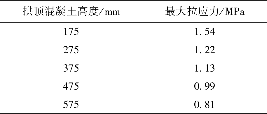拱顶混凝土高度/mm最大拉应力/MPa1751.542751.223751.134750.995750.81