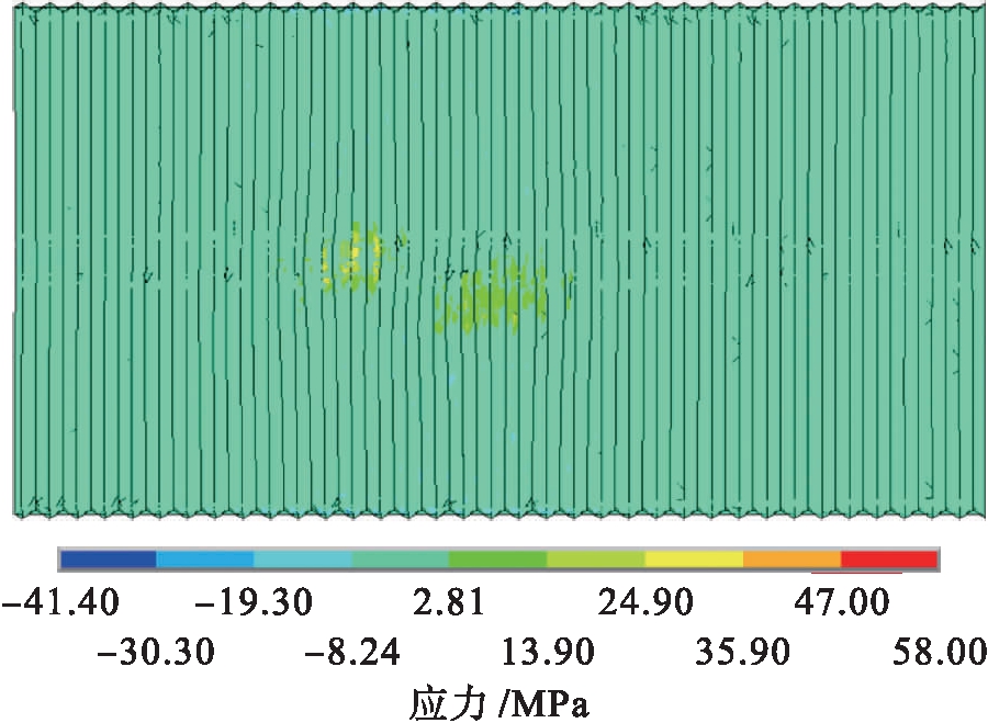 Fig.7 Second principal stress diagram of steel corrugated plate under constant load