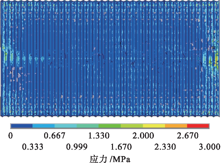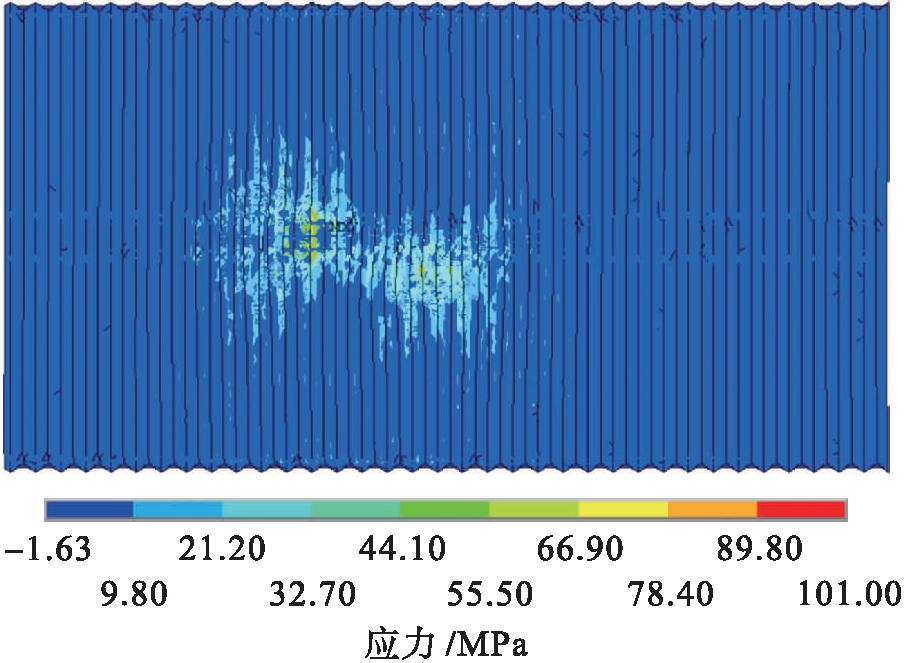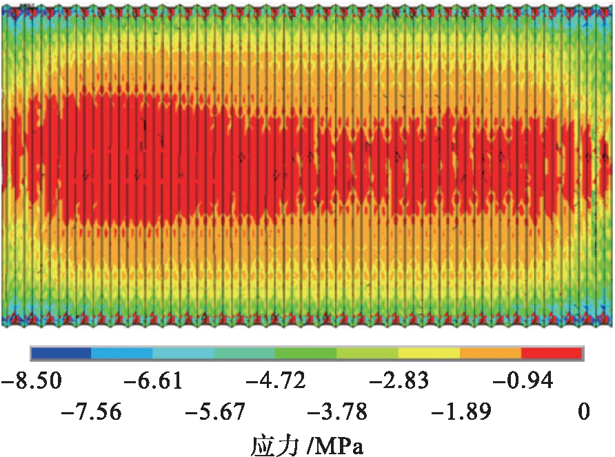 Fig.8 Third principal stress diagram of steel corrugated plate under constant load
