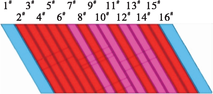 依托工程位于京哈高速段某空心板桥梁.该桥分为左右两幅,全长18 m,跨径布置为1×10 m,桥面净宽2×15 m.该桥上部结构为预应力混凝土空心板,左、右两幅各16块板,下部结构为钢筋混凝土薄壁台,采用桩基础,交角为117°,设计荷载为汽超-20、挂-120.因高速公路交通量不断增大,过往的重载车辆日益增多,该桥已出现严重的病害.