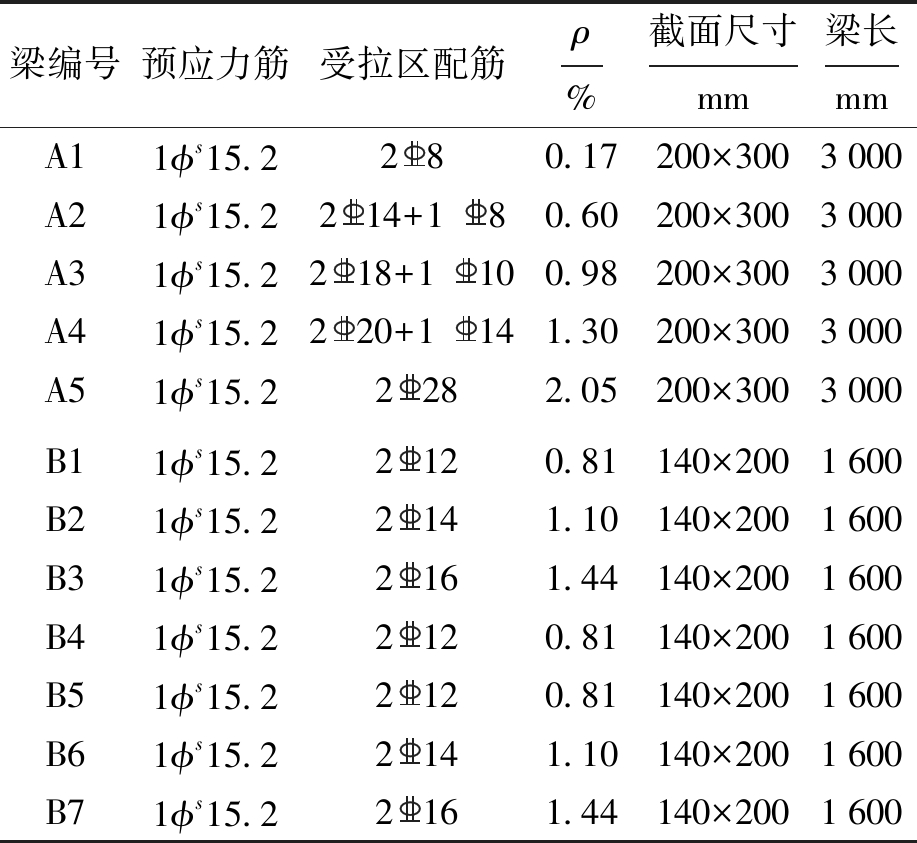 表1 试验梁设计参数