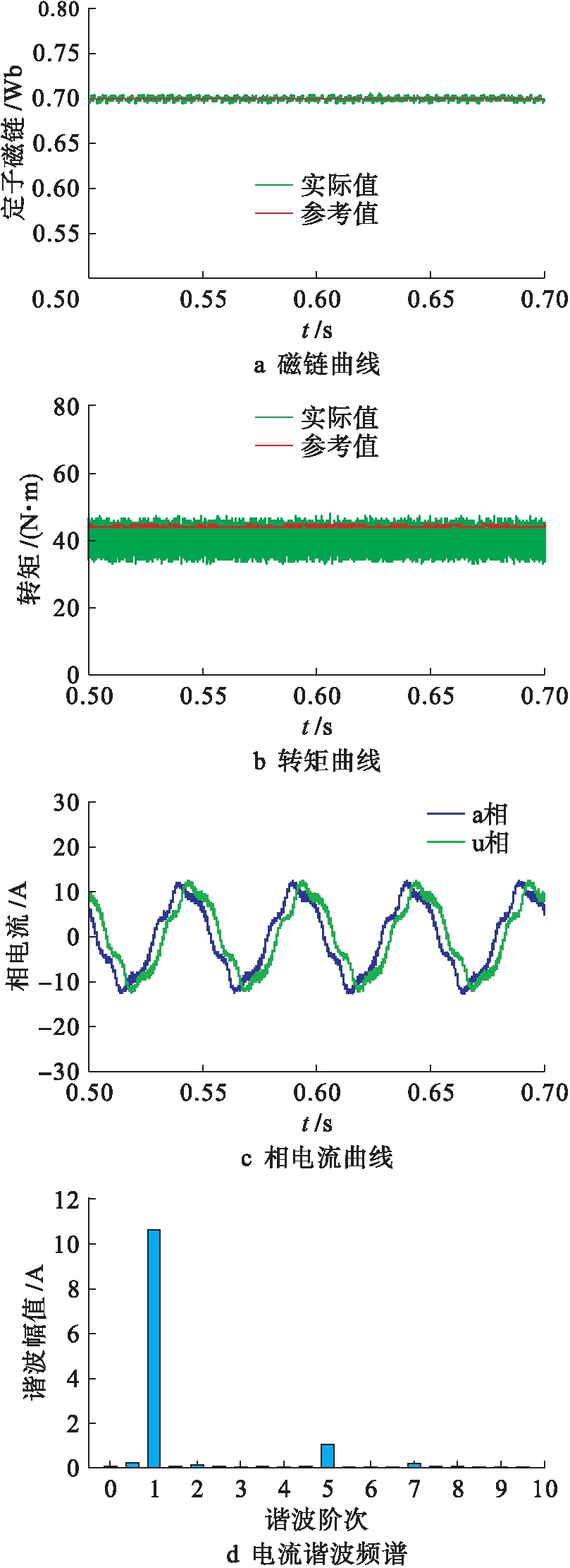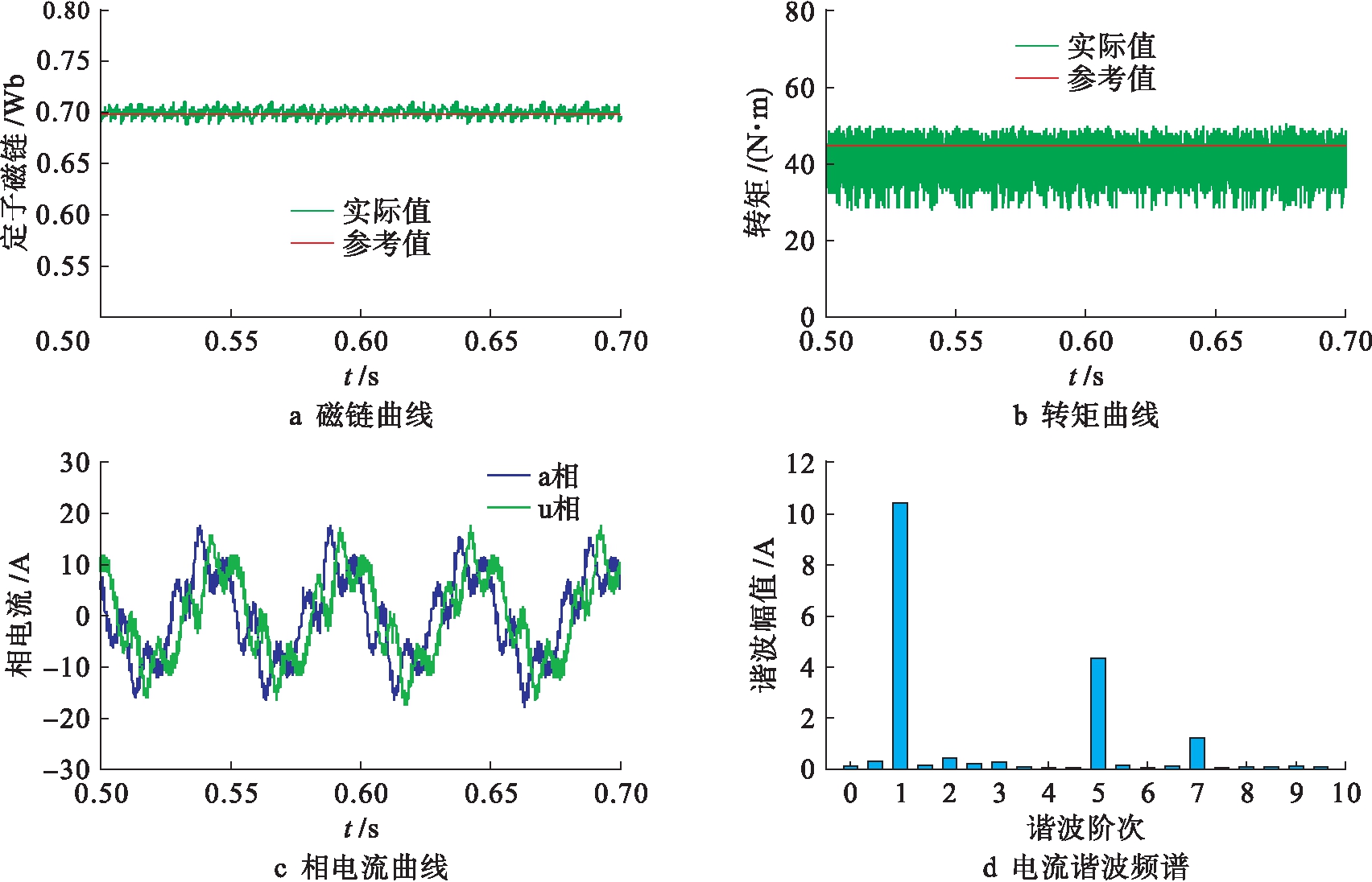 表4给出了两种算法的定量结果,其中转矩和磁链脉动的计算公式为