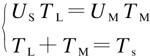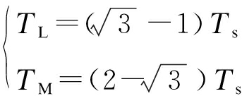 根据图2中两个平面的矢量分布,αβ平面中同一方向的大矢量和中矢量对应于z1z2平面中方向相反的小矢量和中矢量.通过控制两个矢量的作用时间,可以使z1z2平面的合成电压矢量为零.假设在一个控制周期Ts内,αβ平面中同一方向的大变量UL、中变量UM的作用时间分别为TL、TM.当虚拟矢量满足在z1z2平面上幅值为零的约束时,则有