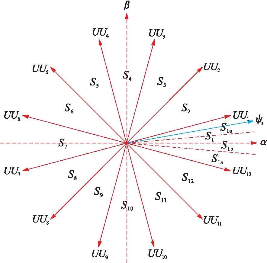 本文所提控制策略中,使用12个虚拟矢量UUi(i=1,2,…,12)来替代传统直接转矩控制中使用的12个大变量,在有效抑制谐波的情况下,保持较高的电压利用率.