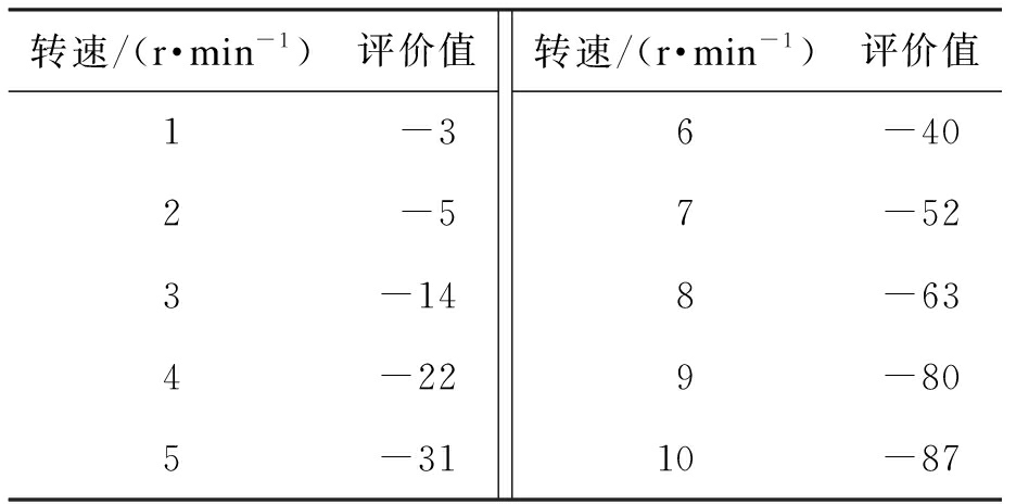 转速/(r·min-1)评价值1-32-53-144-225-31转速/(r·min-1)评价值6-407-528-639-8010-87