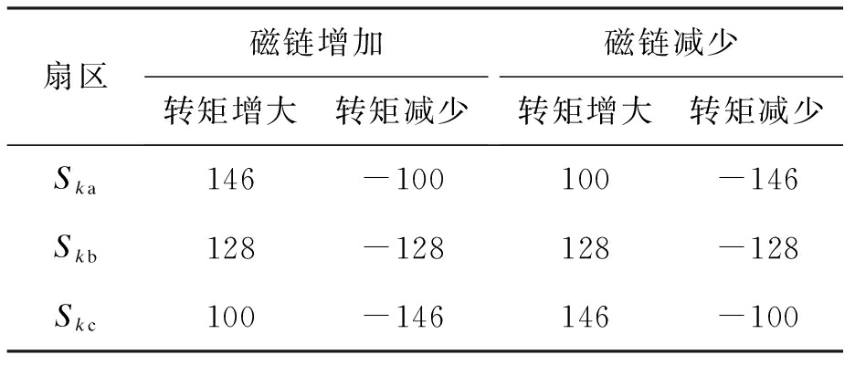 扇区磁链增加转矩增大转矩减少磁链减少转矩增大转矩减少Ska146-100100-146Skb128-128128-128Skc100-146146-100
