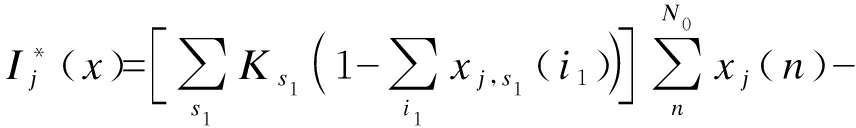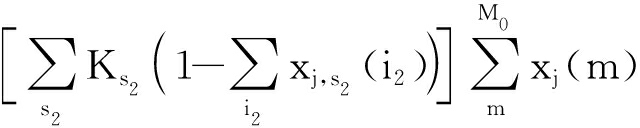 式中:“∑”为逻辑“或”运算;Ks1、Ks2为电源的接入系数,判断第j号开关上、下半区的电源是否接入系统,若接入其值取1,否则为0;xj,s1、xj,s2分别为第j号开关到上半区电源s1、下半区电源s2路径上所经过线路区段的状态值,当线路故障时状态值取1,否则取0;xj(m)、xj(n)分别为第j号开关上、下半区线路区段状态值;M0、N0分别为第j号开关上、下半区线路区段总数.