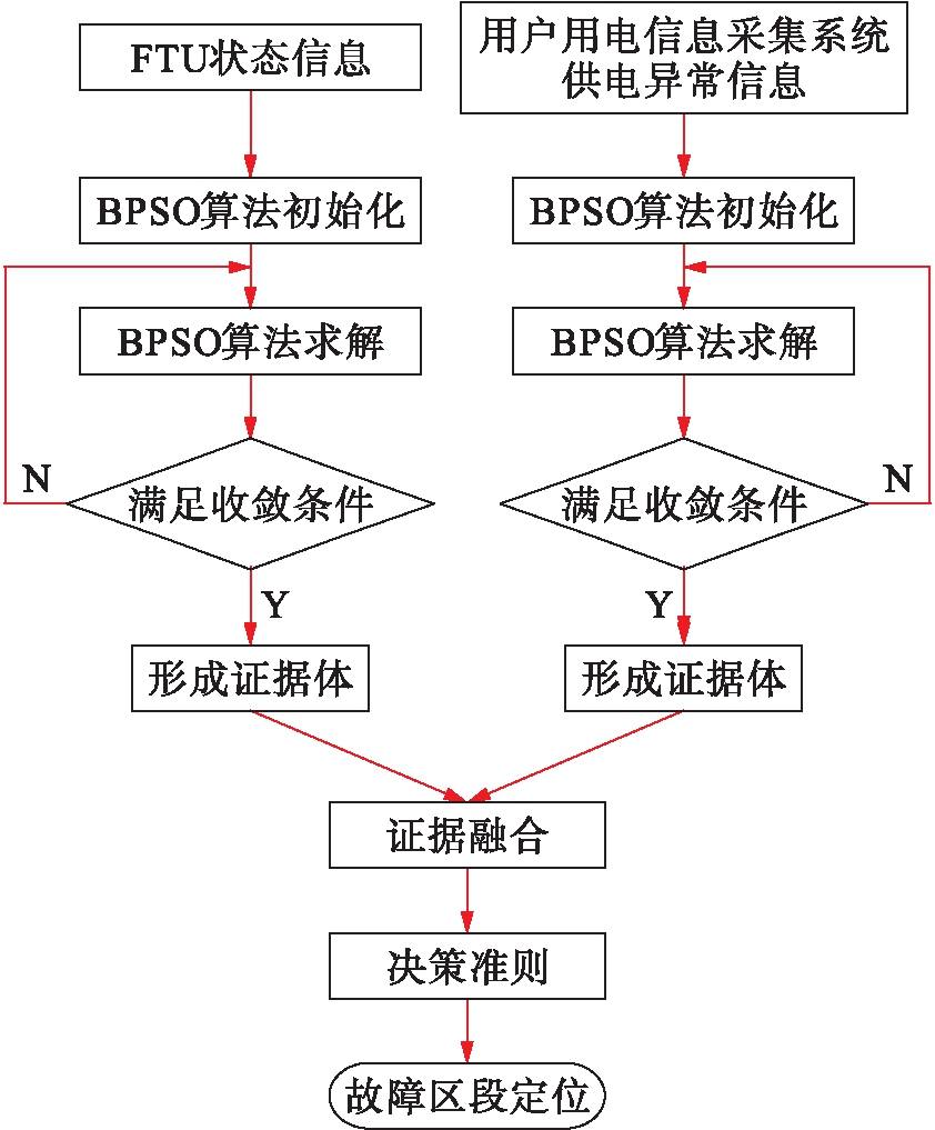式中:ri为粒子群中的粒子;C为概率密度.基于多源信息的故障定位过程如图1所示.