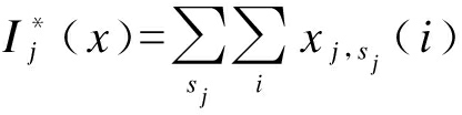 式中:Ij(x)为FTU与用户采集系统上传的故障信息;M1为线路区段总数;x(j)为线路区段状态;ω为不大于1的随机正系数.第一项为实际收到的故障信息与期望故障信息之间的差异,若为利用FTU构建的适应度函数,则N1为配电网中FTU的数量;若为利用用户用电采集系统信息构建的适应度函数,则N1为配电网中用户数量.第二项为发生故障的区段总数.