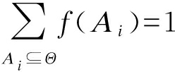 本文采用D-S证据理论进行信息融合.D-S证据理论在1967年由Dempster[10]提出,利用上、下限概率解决多值映射问题,后由Shafer[11]进一步推广.对于某一问题的所有可能结果用集合Θ表示,Θ称为识别框架,包含有限的互斥命题,即Θ={A1,A2,…,Ap}.对于集合Θ概率分配函数f应满足