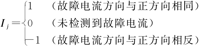 当配电网某一点发生短路故障,可以通过设定区别短路电流与工作电流的FTU上报阈值获取故障过流信息[9].但是由于DG的接入,配电网潮流不再是单向,因此假定系统电源至配电网馈线的方向为正方向,第j号开关处检测到的过流信息编码为