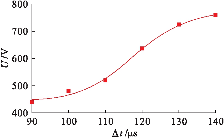 由于反向恢复过程中晶闸管的阻断能力不断恢复,引起二次导通的条件也随之改变.为探究其规律,实验研究不同时刻引起晶闸管二次导通的脉冲电压幅值情况,如图5所示,变化趋势呈现S型增长.