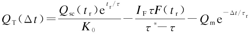 式中:τ为N基区少子空穴的寿命;K0为晶闸管中等效NPN晶体管的电流增益;I(t)为时刻t流过晶闸管的瞬时电流.在此过程中存储电荷Qr(t)也按指数规律衰减[10],可表示为