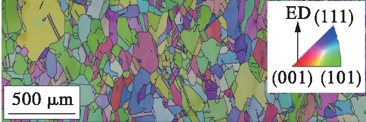 2) 在800 ℃挤压温度下晶粒内部再结晶晶粒较为粗大,晶粒形状多为块状和圆形,孪晶含量较高,挤压变形后晶粒内部出现大量以Σ 3特殊晶界为孪晶界的<111>60°退火孪晶.