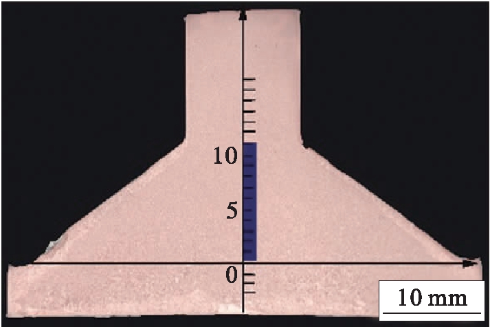 为了进一步研究挤压温度对高纯铜挤压变形晶粒尺寸演变的影响,并分析压余变形区组织均匀性及晶粒尺寸的变化规律,现针对挤压后的压余微观组织进行金相观察,具体观察位置如图7所示.
