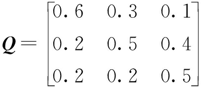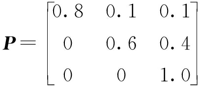 根据系统可能存在状态,设初始条件下概率分布c0={1,0,0},根据故障概率模型计算状态转移矩阵,即
