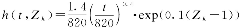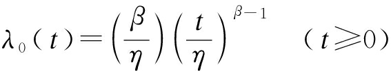 比例故障模型又称为Cox模型[10-11],是一种有关装备检测数据以及历史寿命等寿命数据的统计分析方法,表示系统运行时间小于运行时间t的比率,基本形式为