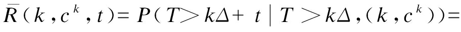 在t>Δ的一般情况下,在监测点后任意时刻系统状态都可能发生变化,上述模型并不适合,故需将数学模型推广到更一般情况.在监测点k时,系统状态Zk条件下,由式(3)根据贝叶斯公式类比出在t>Δ条件下可靠度函数为