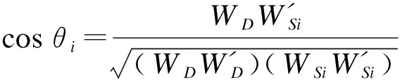表示构成已知设备样本库的第i个样本特征,其中i=1,2,…,N,WD={wb1,wb2,…,wbm,wh1,wh2,…,whn}表示在线检测得到的设备Web身份特征序列,其中,wb1,wb2,…,wbm为m个BANNER字段特征,其中每一个字段特征又是一个字符序列特征;wh1,wh2,…,whn为n个HTML文本特征,同样,每个文本特征本身也是一个字符序列特征.经过适当的补零操作,上述特征可以共同构成一个字符特征矩阵,选择余弦距离测度对在线设备Web身份特征进行相似性度量,即