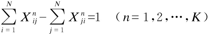 如果车辆由节点i到节点j,则Xij为1,否则为0,其约束条件表达式为