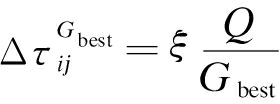 为第k只蚂蚁释放在路径i-j上的信息素;Gk为第k只蚂蚁构建的路径长度.