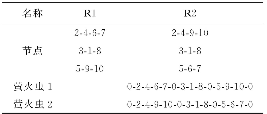 名称R1R22-4-6-72-4-9-10节点3-1-83-1-85-9-105-6-7萤火虫10-2-4-6-7-0-3-1-8-0-5-9-10-0萤火虫20-2-4-9-10-0-3-1-8-0-5-6-7-0
