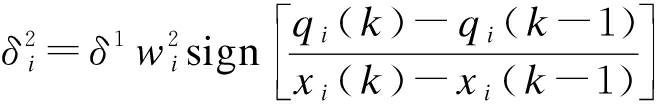 式中,η2为隐藏层到输出层的权重学习步长;δ1的表达式为