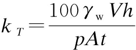 式中:kT为水温T ℃时的水泥土渗透系数;γw为水的重度;V为渗流过程中其时间间隔为t渗出的水量;h为水泥土试件高度;p为渗透压力;A为水泥土试件的横截面积;t为时间间隔.