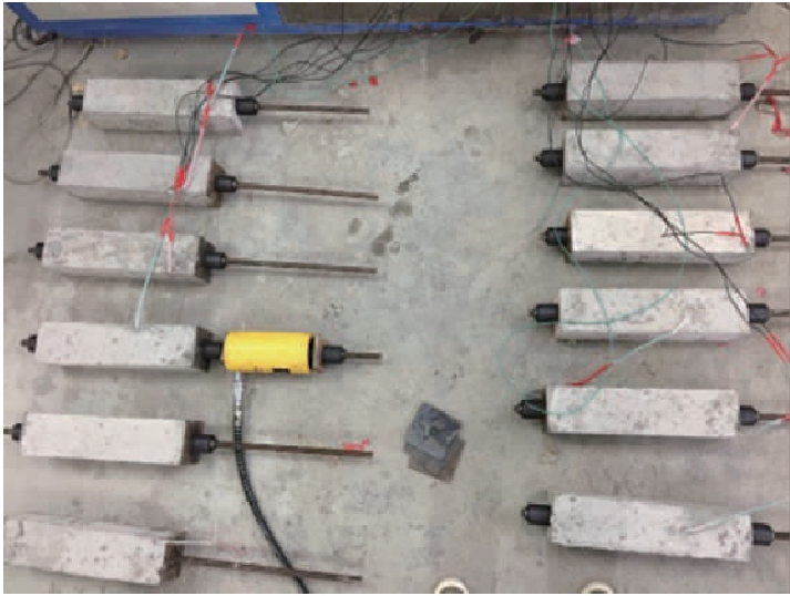 为了监测试件的预应力损失情况,需要将钢绞线上的应变片与应变仪连接,本试验使用XL2118A型应变仪,连接方式为1/4桥.在试件加载之前,需要预先对每组的4号试件进行张拉加载,根据应变仪读数计算这三个试件预应力损失占所加预应力比例的平均值,依据该平均值对参与冻融试验的试件(每组1~3号)超张拉.引入ηo作为超张拉系数,
