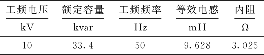 选择型号为CKGKL-33.4/10-5W的10 kV电抗器作为仿真和现场试验的主要依据,该型号电抗器的内部参数如表1所示.基于MATLAB/Simulink的系统主回路的仿真模型如图2所示.