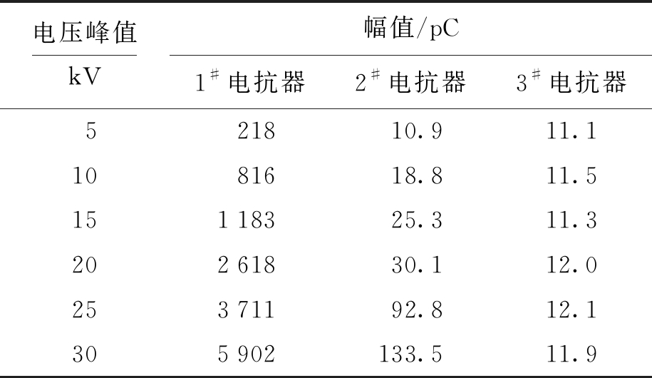 电压峰值kV幅值/pC1#电抗器2#电抗器3#电抗器521810.911.11081618.811.515118325.311.320261830.112.025371192.812.1305902133.511.9