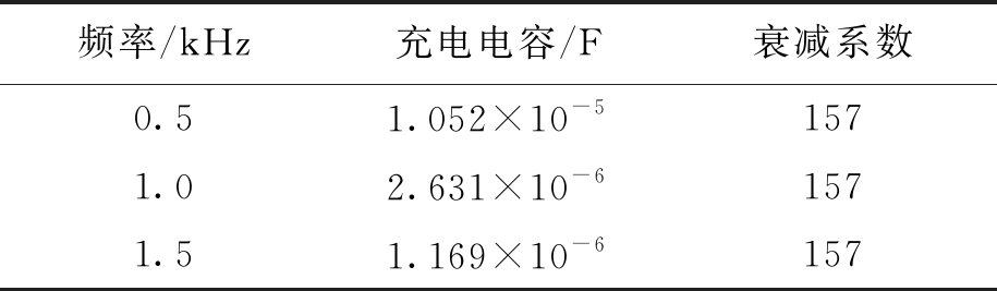 频率/kHz充电电容/F衰减系数0.51.052×10-51571.02.631×10-61571.51.169×10-6157