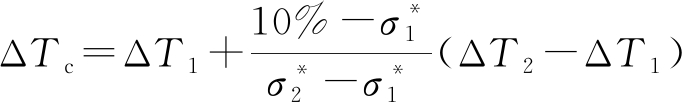 分别为试验温度T1和T2下的抗弯强度损失率;ΔT1和ΔT2分别为当抗弯强度损失率小于10%和介于10%~20%时,试验温度T1和T2与冷却介质的温度差.