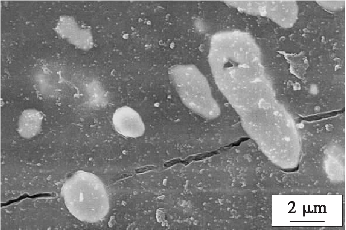 Fig.3 Crack propagation in Al2O3 ceramiccontaining Mo particles