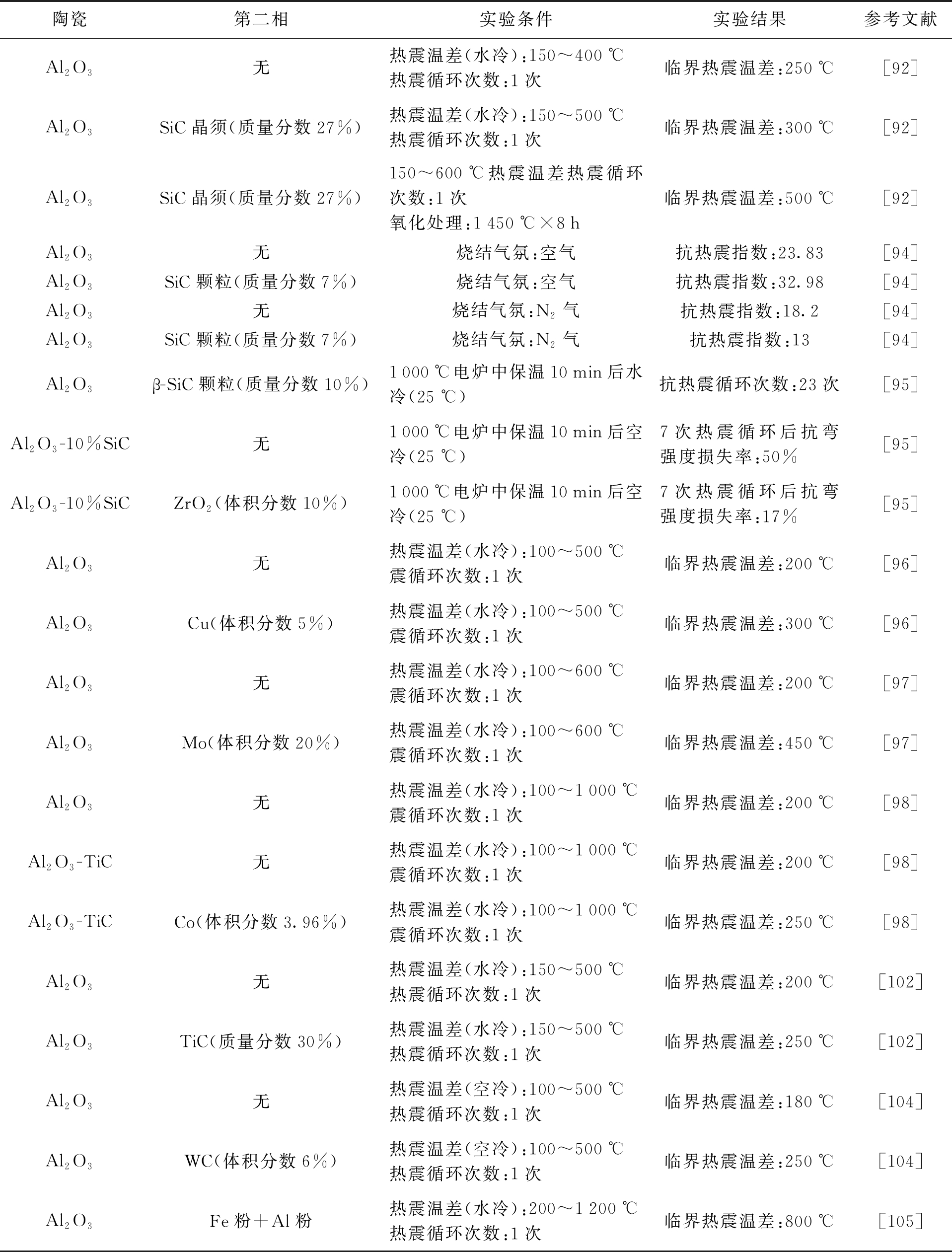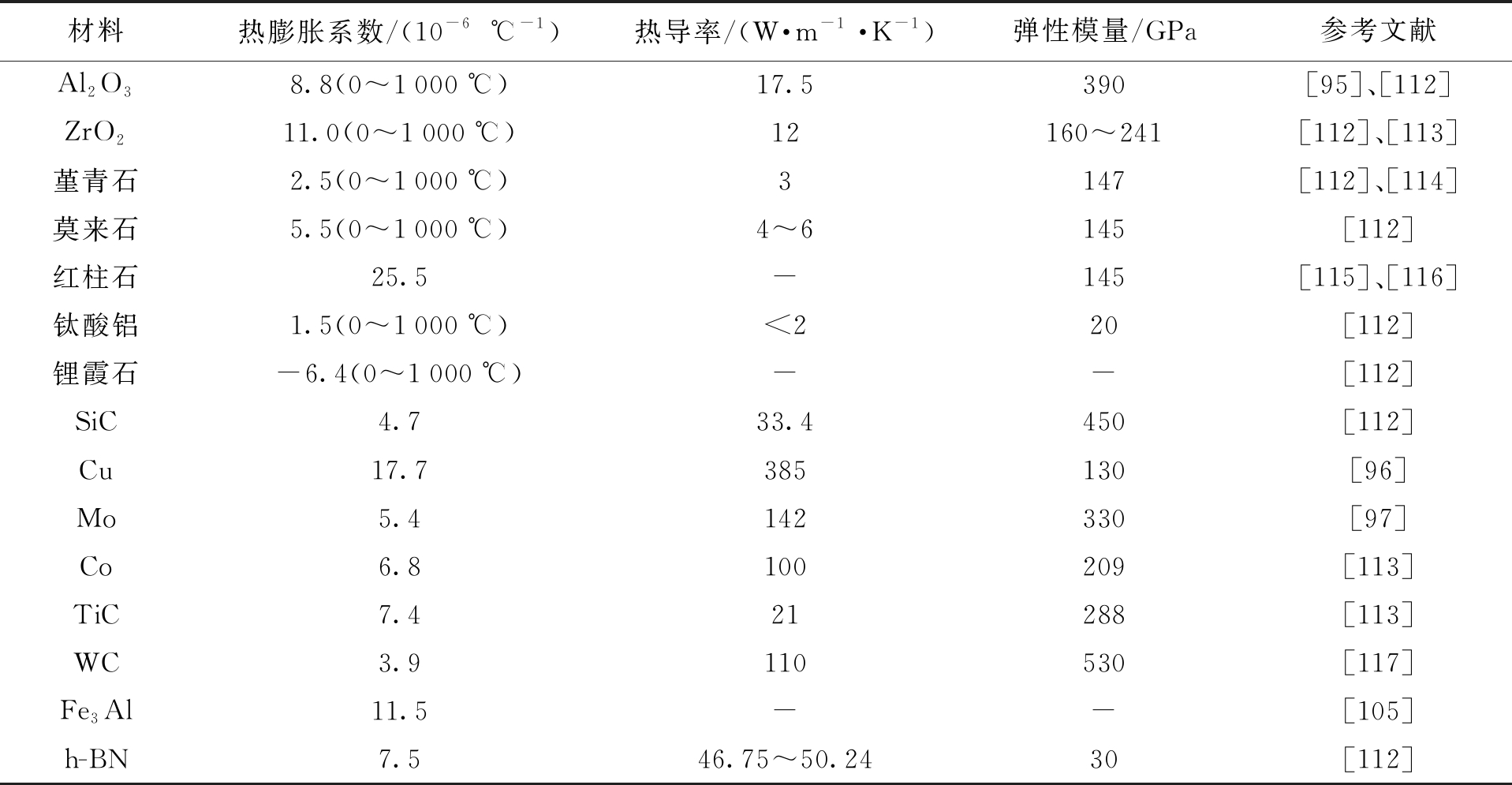 Tab.5 Thermo-mechanical properties of Al2O3and second phases commonly employed in Al2O3 thermal shock resistant ceramics