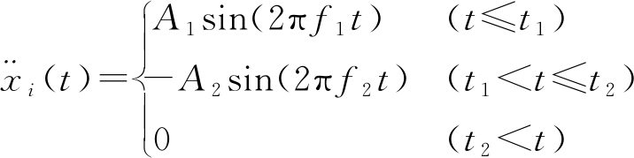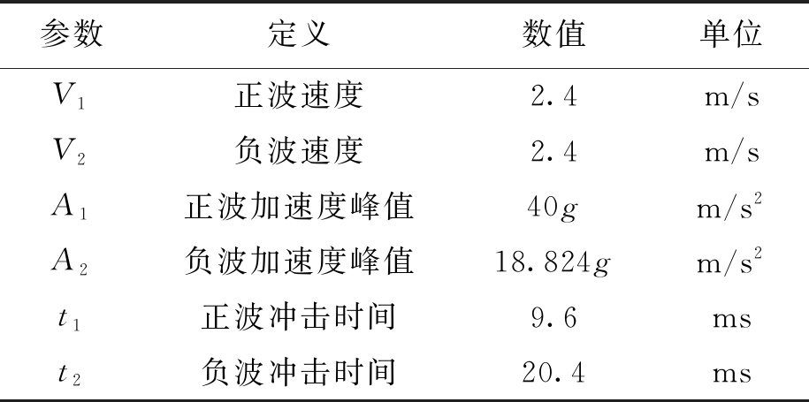 隔振系统的输入为冲击载荷,根据德国军标BV043-85的相关规定,采用图2所示的正负双半正弦波表示水下非接触爆炸冲击载荷,相应冲击载荷参数如表2所示.
