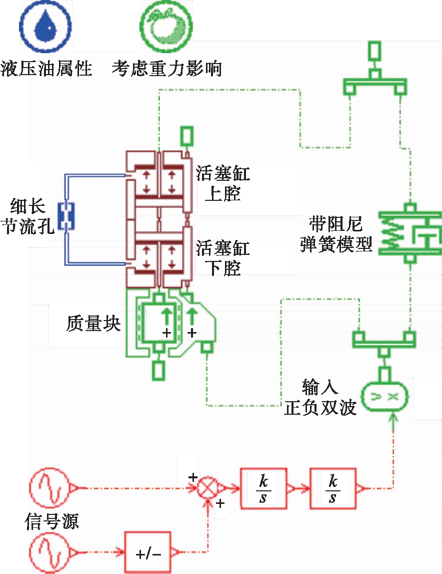 由于系统选用的油液为非牛顿流体,液压油的流动指数是一个未知参量,因而无法通过理论计算确定粘滞摩擦阻尼力.本文利用AMEsim软件[14]求解液压阻尼力,确定阻尼力表达式中的流动指数,并完成数学模型的求解和试验验证.