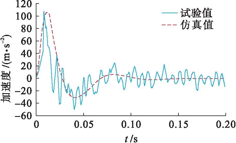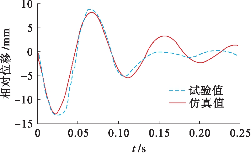 调整试验装置各部分参数使其同仿真计算参数一致,通过垂向双波冲击试验机施加与仿真相同的冲击激励进行冲击试验验证.