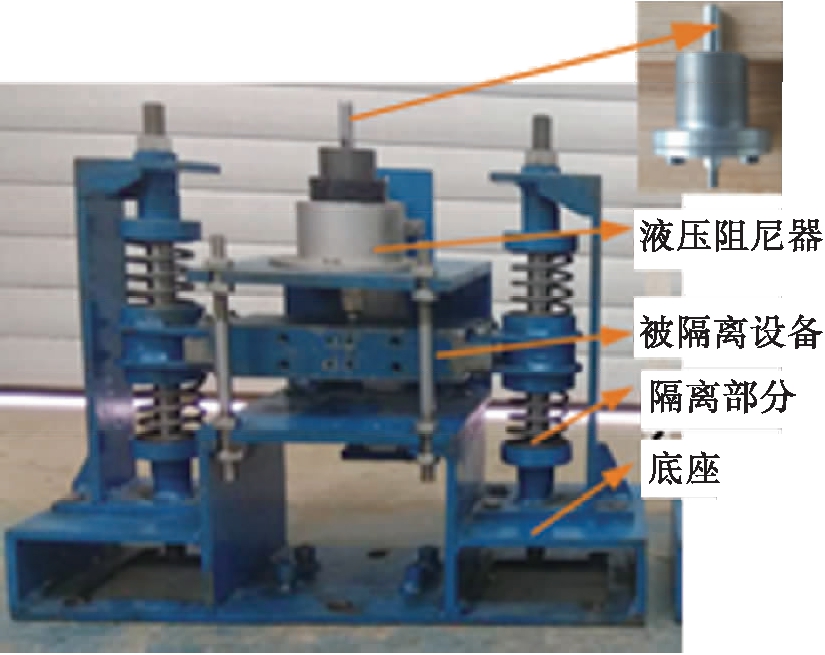 为了研究隔振系统的隔振效果,需要建立隔振系统数学模型.以被隔离设备为研究对象,应用达朗贝尔原理建立隔振系统数学模型.以液压粘滞阻尼器为研究对象,建立液压粘滞阻尼器数学模型,相应模型表达式为